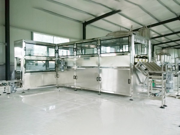 大桶水灌装机是借鉴了国内外灌装设备优良的技术性能和优点,具有功能全、规模小、投资少、自动化程度高等特点,生产线是供5加仑桶装水的全自动灌装机械设备;适用于矿泉水、纯净水等无汽灌装生产的设备。该生产线通过自身提供动力实现自动在线拔盖、自动洗桶、自动反转进入冲灌封主机后自动完成原水预冲洗、药水碱水******冲洗、循环水冲洗、净水冲洗、自动灌装、挂盖压盖封盖、胶帽热缩、套袋等工作;实现一体化封闭管理,做到无菌化灌装生产;该线设备结构紧凑,工作效率高且稳定,动作灵敏正确,自动化程度高,是机电气三位一体的全自动桶装灌装生产设备。