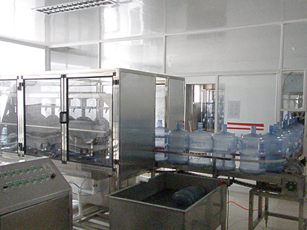 QGF系列大桶水灌装包装生产线是借鉴了外灌装设备技术性能和优点,具有功能全、规模小、投资少、自动化程度高等特点,生产线是供5加仑桶装水的全自动灌装机械设备;适用于矿泉水、纯净水等无汽灌装生产的设备。该生产线通过自身提供动力实现自动在线拔盖、自动洗桶、自动反转进入冲灌封主机后自动完成原水预冲洗、循环水冲洗、净水冲洗、自动灌装、挂盖压盖封盖、胶帽热缩、套袋等工作;实现一体化封闭管理;该线设备结构紧凑,工作效率高且稳定,动作灵敏正确,自动化程度高,是机电气三位一体的全自动桶装灌装生产设备。