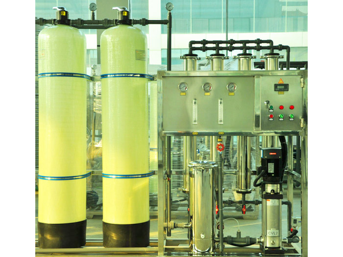 源水箱→源水泵→沙滤器→炭吸附器→计量加药系统→精滤器→高压泵→反渗透装置→******装置→成品水箱→用水点